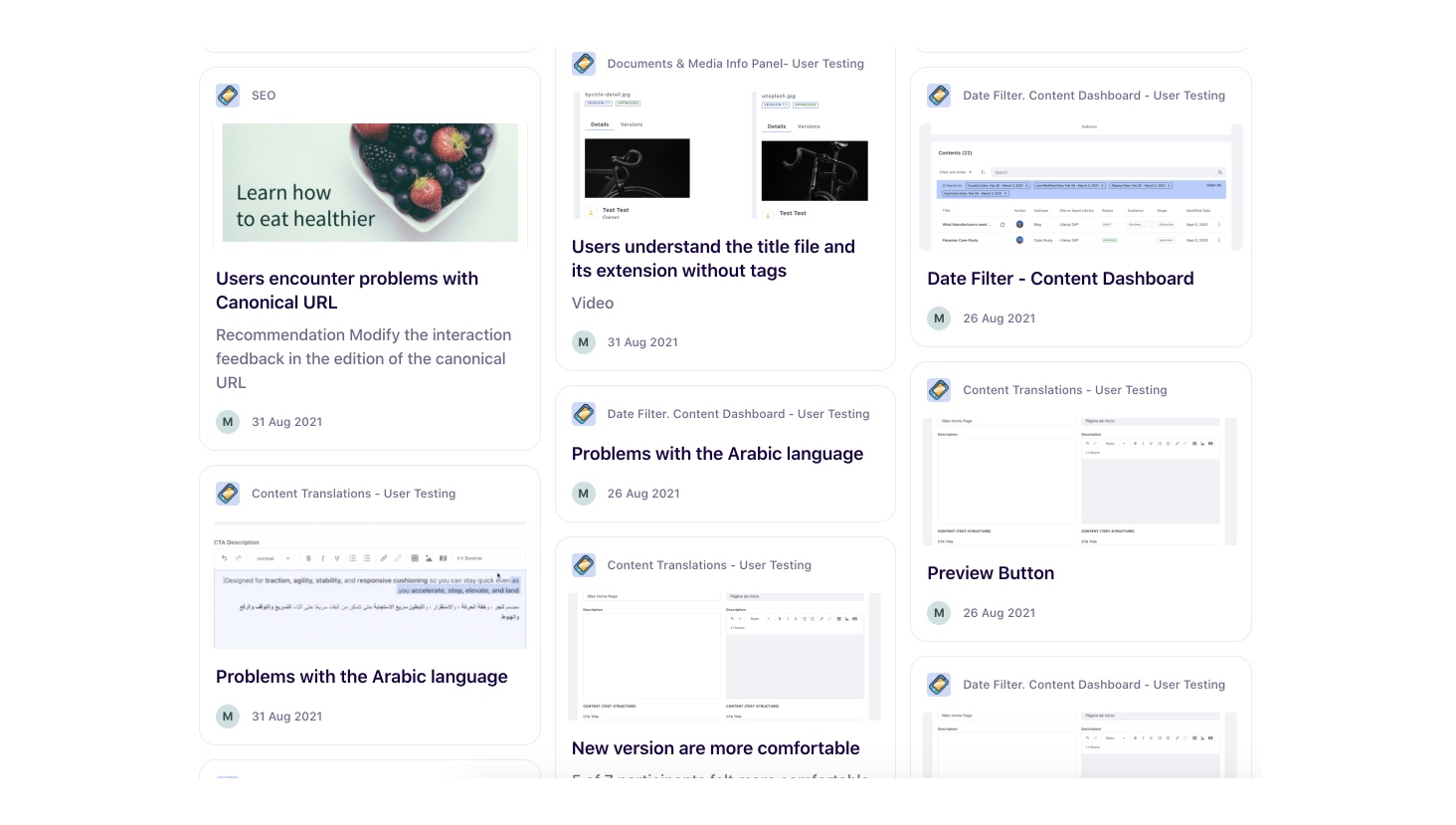In addition to these elements, there were recurring questions from different teams such as: Do you know if users filter more by date than by category? Has the behavior of this component been previously analyzed? Do users understand the navigation in this product?