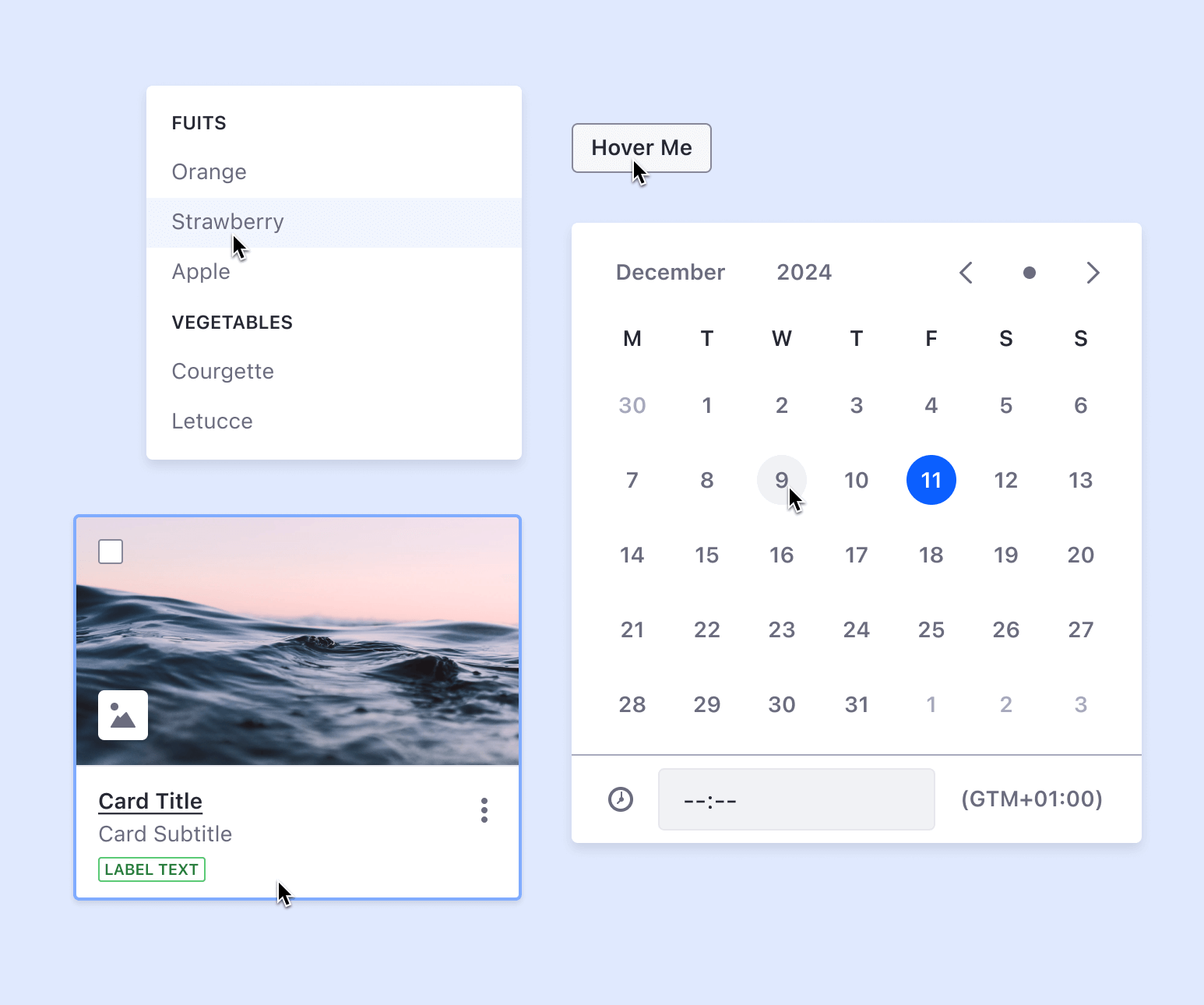 Interactive components are now part of the package. This significantly reduces prototyping time, eliminating the need to duplicate screens for hover interactions.