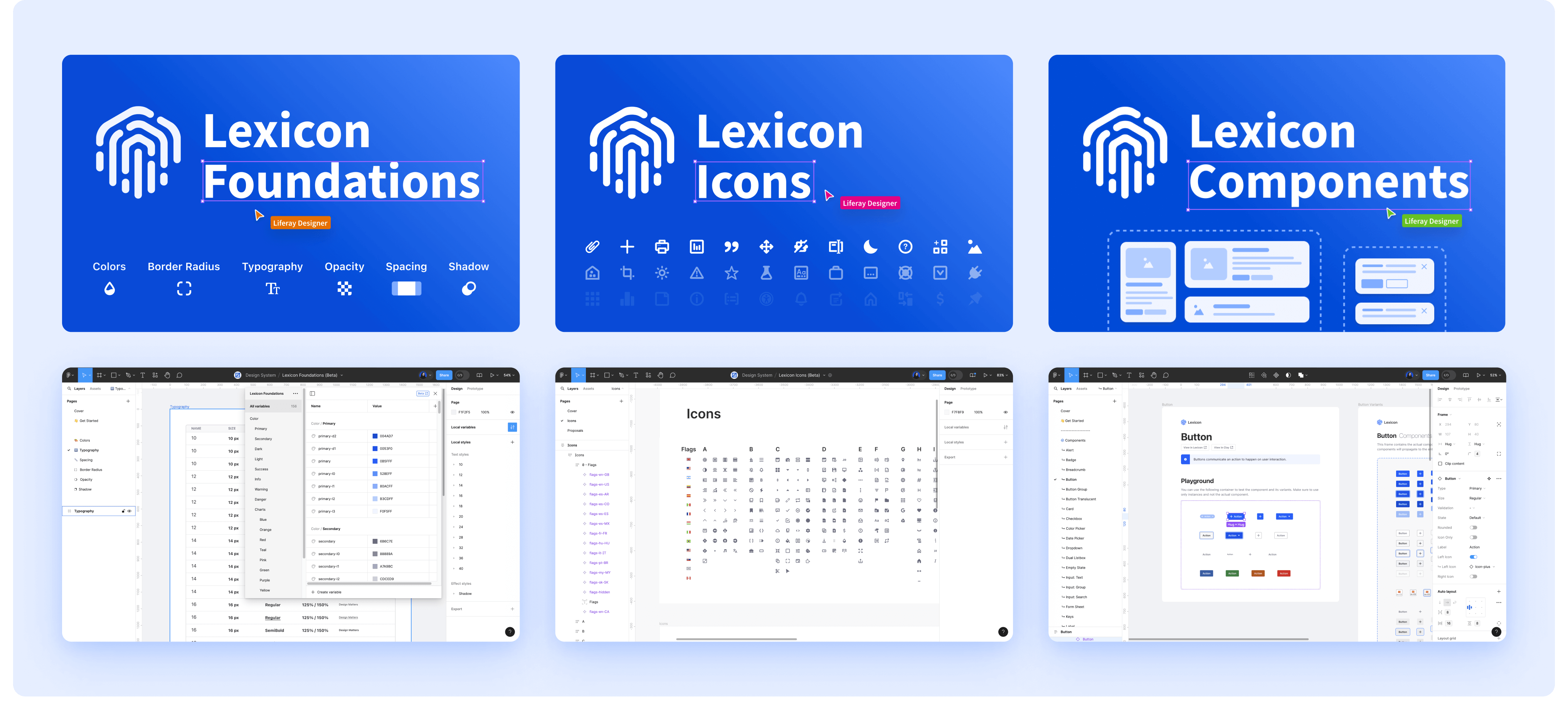 - Lexicon Foundations Contains essential design elements such as colors, typography, spacing, corner radius, opacity, and shadows.