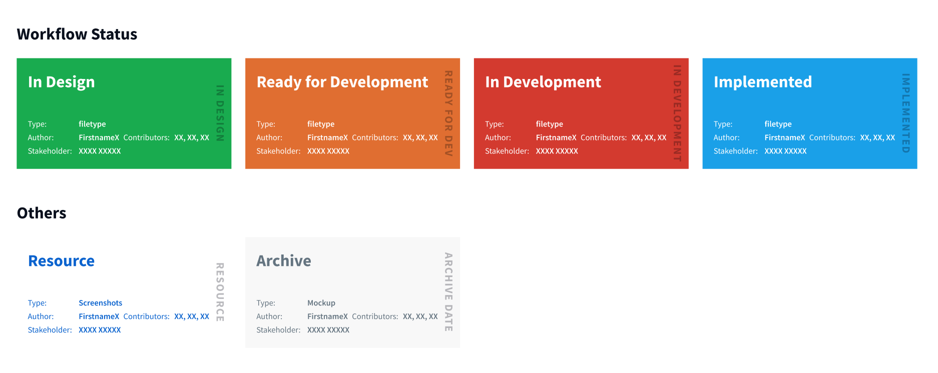 Files should use a cover page and cover component to indicate the current design stage of the file, as well as meta information such as file type, author, and contributors.