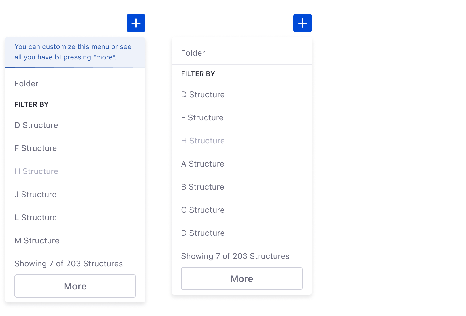 When creating dropdown menus for plus buttons, please follow the guidelines shown below: