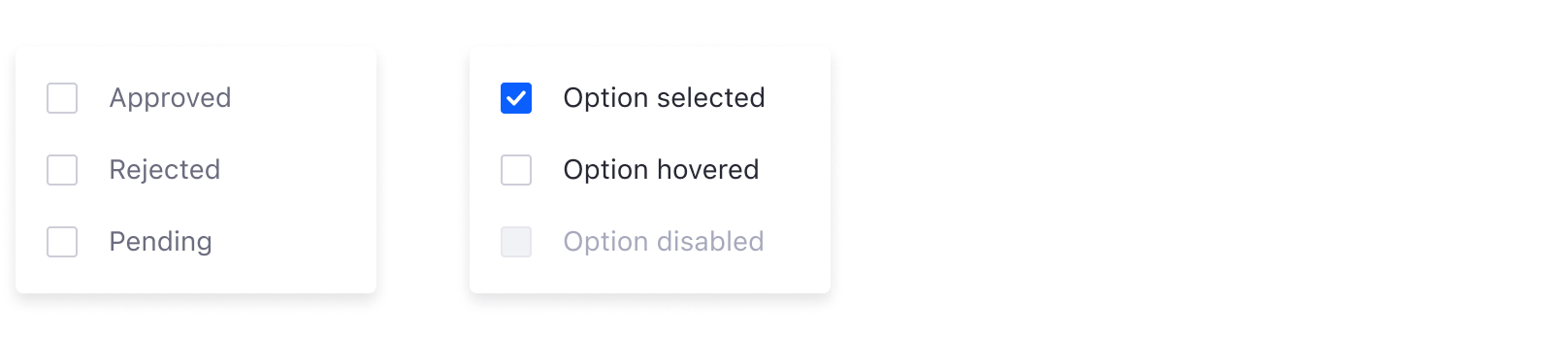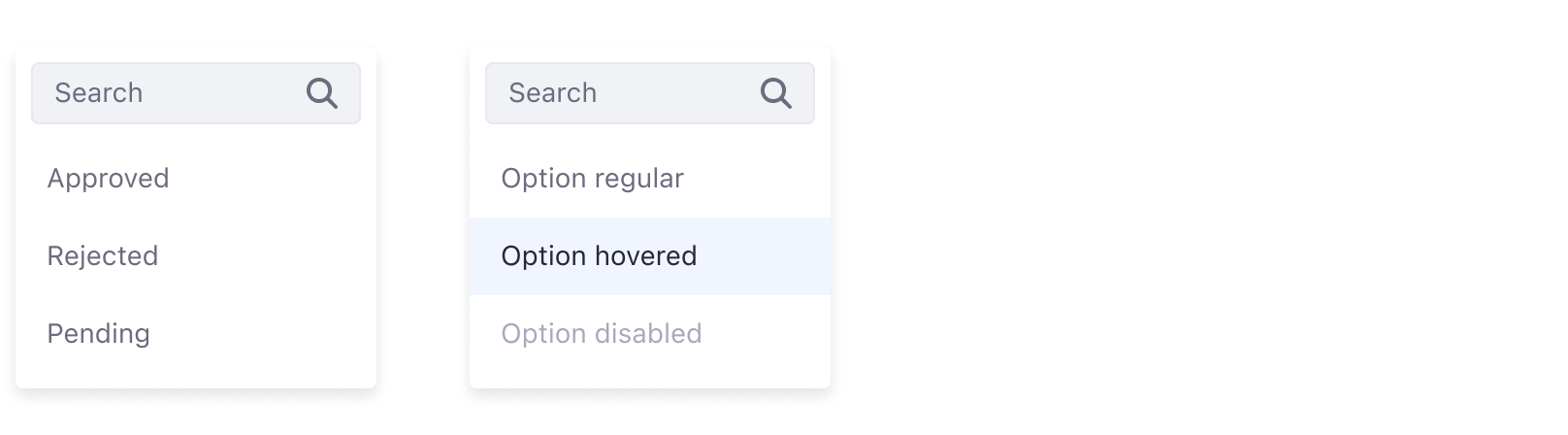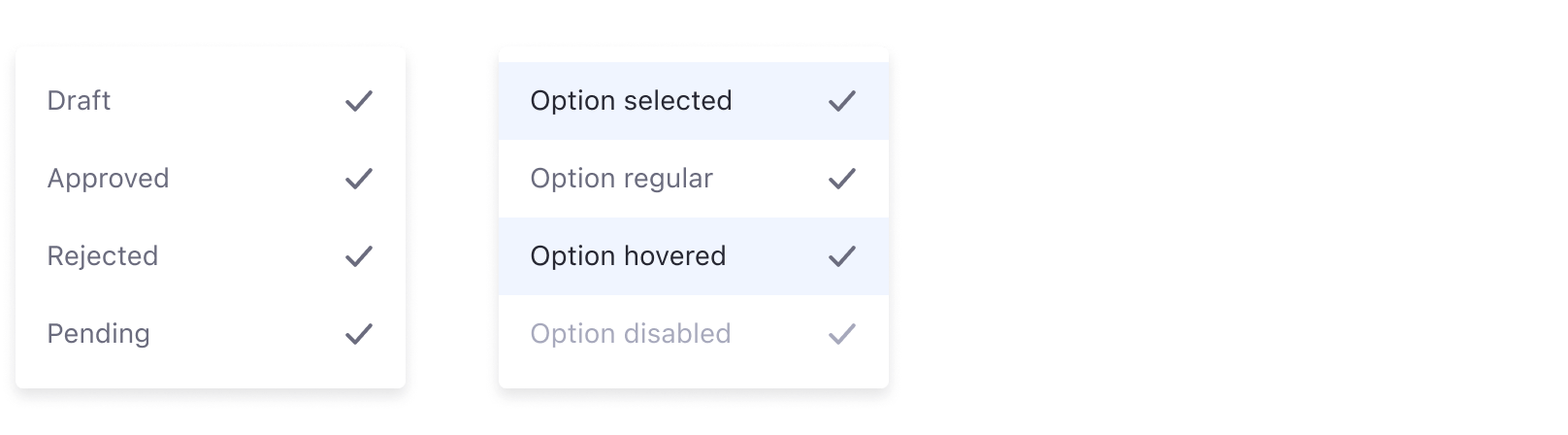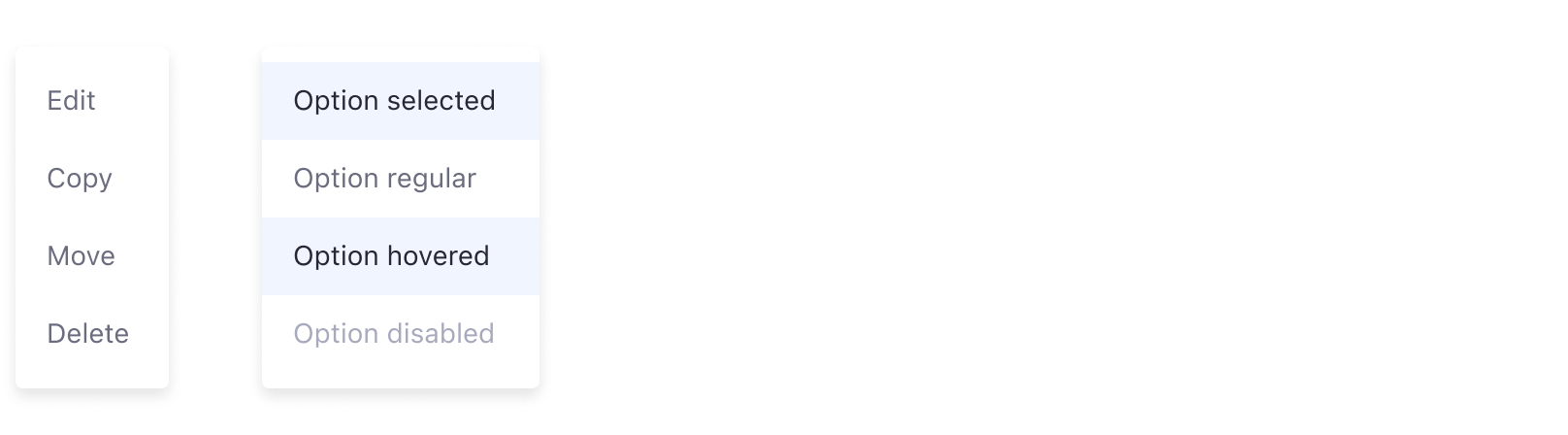 A dropdown menu displays a list of options for the element that triggers it.